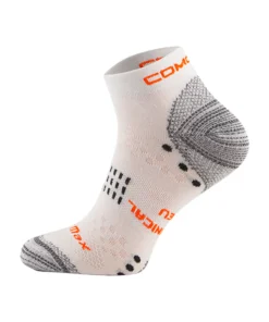 A Coolmax poliészter gyorsan elvezeti a nedvességet a bőrről, így a láb száraz és friss marad még intenzív futás közben is. A poliamid puha tapintású, tartós és légáteresztő, biztosítva a zokni hosszú élettartamát és a kényelmet. A polipropilén hozzájárul a hőszabályzáshoz és gyors száradáshoz. Az elasztán rugalmas illeszkedést biztosít, megakadályozza a gyűrődést, és minden lépésnél stabil tartást nyújt.