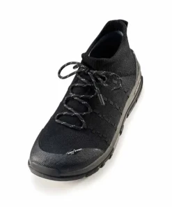 A Strap-Fit fűzőrendszer egyenletesen oszlatja el a nyomást, stabilan tartva a lábat. A fűzők széleskörű állíthatósága révén a cipő magasabb rüsztre is kényelmesen illeszkedik. A puha, rugalmas (zokniszerű) bokarész teljes mozgásszabadságot biztosít, míg a varrásmentes kialakítás megelőzi a kidörzsölődést. A klasszikus túrabakancsokkal ellentétben nem nyújt merev bokatartást, ami nagyobb mozgásszabadságot, természetesebb járásélményt és könnyedebb lépést biztosít hosszabb túrákon is.
